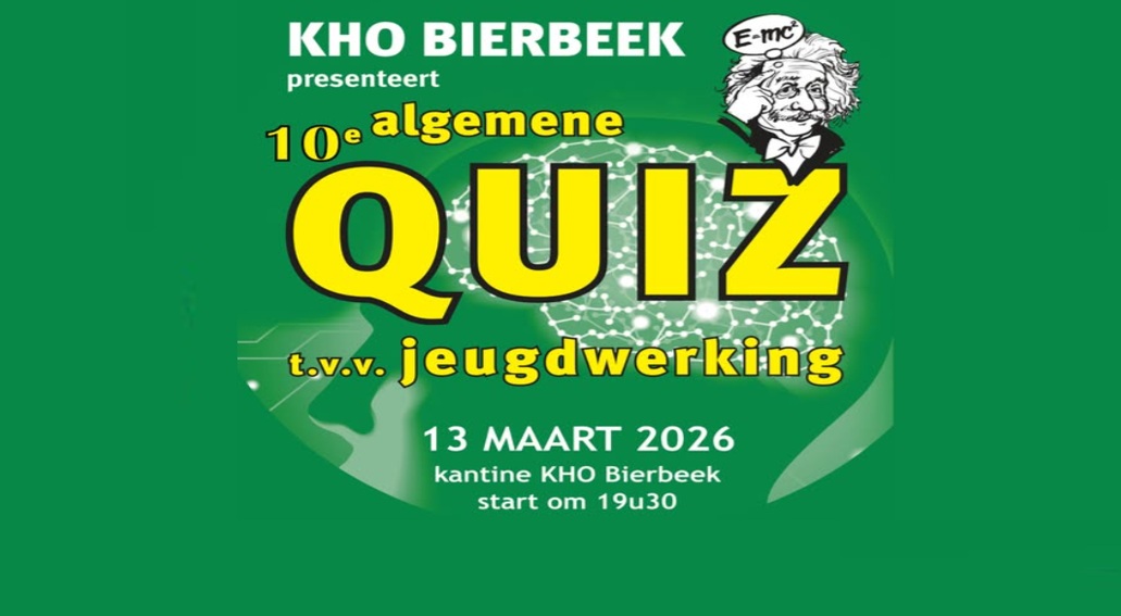 Op 13 maart 2026 is het weer zover: de Algemene KHO Bierbeek Quiz. Zelfde concept en ambiance als de vorige jaren. Een plezante avond dus voor zowel de gelegenheidsquizzer als de iets meer ervaren quizzer! Wacht niet te lang met inschrijven. Dat doe je gewoon door [email protected] te mailen en je ploegnaam te vermelden. Ploegjes van maximum 5 personen. Prijs is 25 € per ploeg, ter plaatse te betalen. Quiz start om 19u30. Deuren open vanaf 18u30.