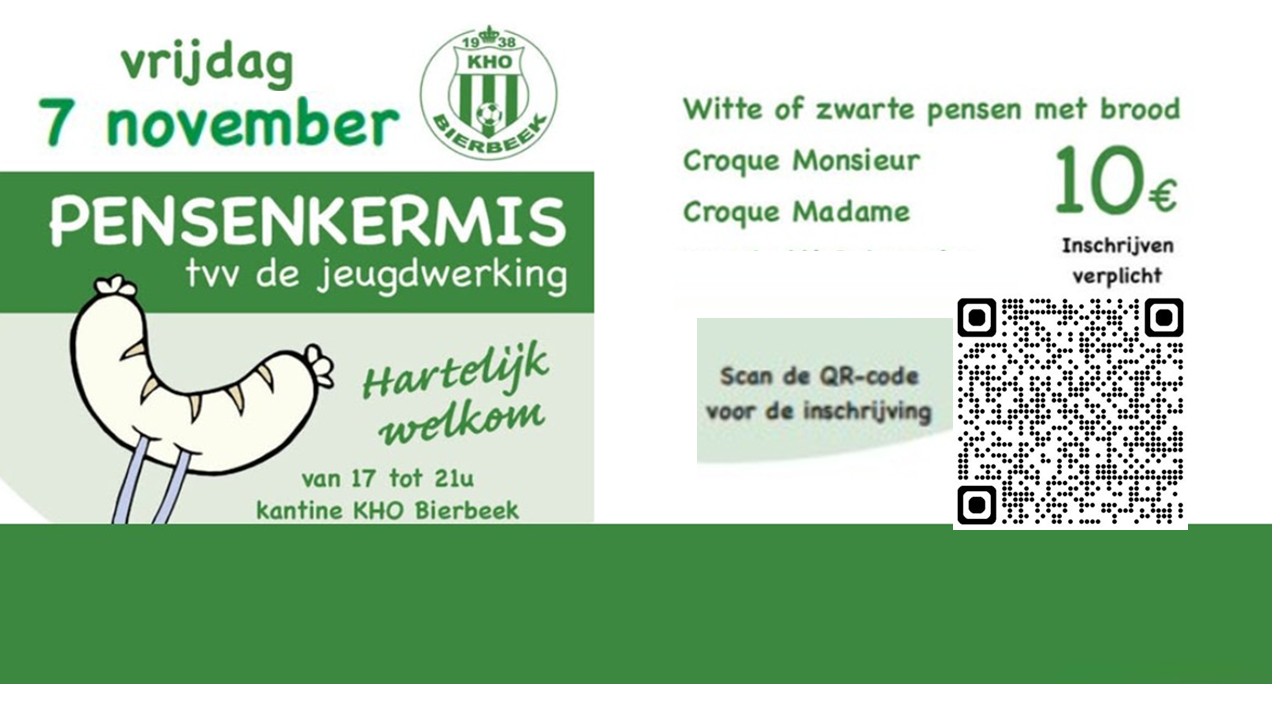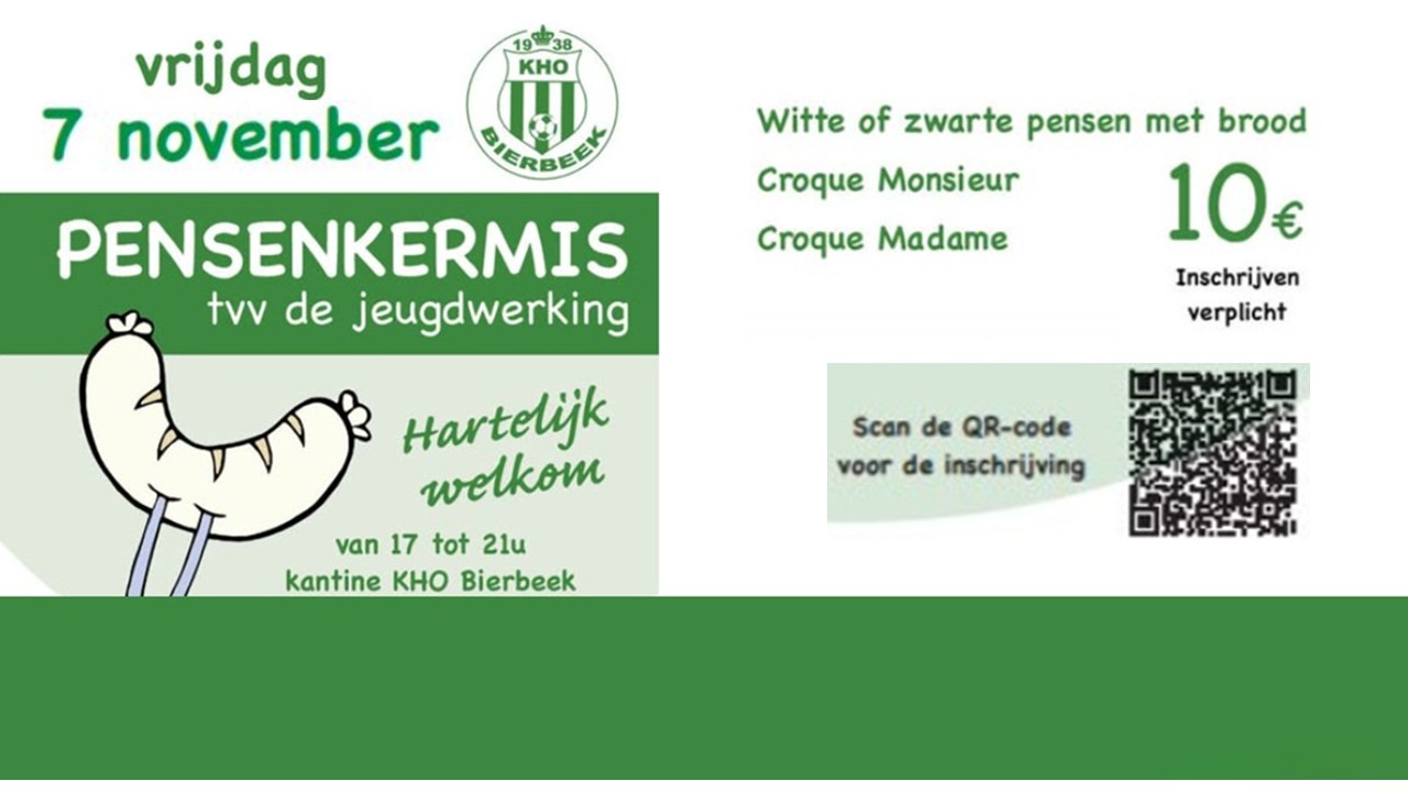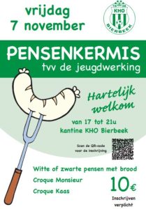 Op vrijdag 7 november organiseren we een pensenkermis op KHO Bierbeek ten voordele van de jeugdwerking. Ideaal om die vrijdagavond zelf niet te moeten koken….