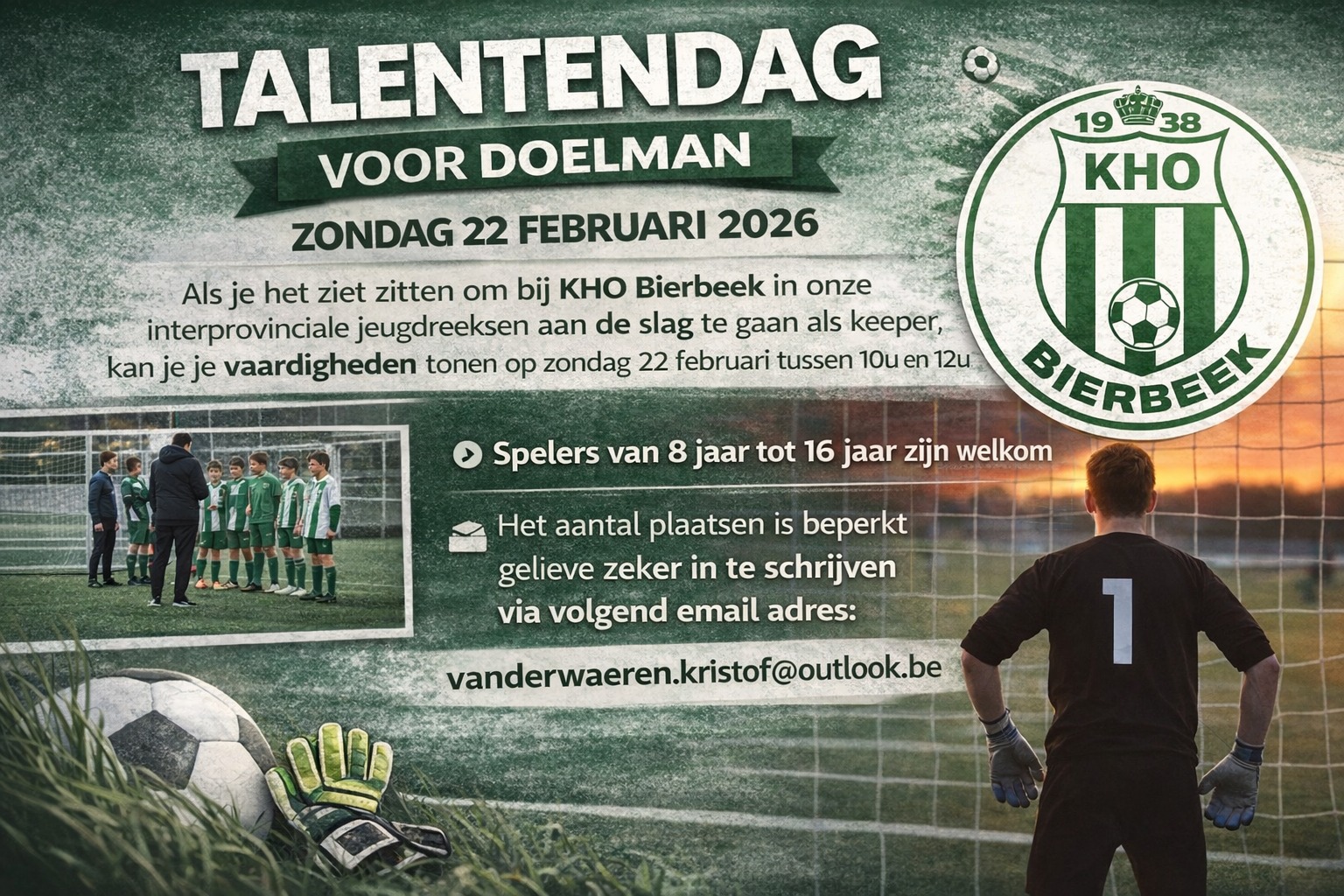 Dan kan je je kunnen tonen op zondag 22 februari tussen 10u en 12u op KHO kunstgrasveld in Bierbeek.